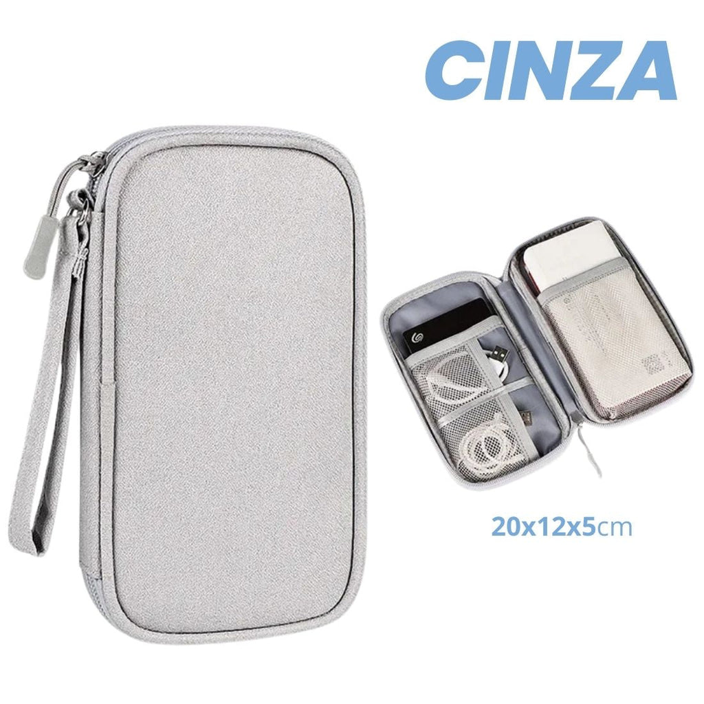 Seu interior possui uma rede protetora, divisórias elásticas de diferentes tamanhos e dois compartimentos principais, permitindo acomodar com segurança cabos USB, carregadores, power banks, HDs externos, fones de ouvido, cartões SD e muito mais. Seu zíper metálico é resistente e suave, e o tecido de poliéster impermeável protege seus gadgets contra chuva, arranhões, poeira e impactos.