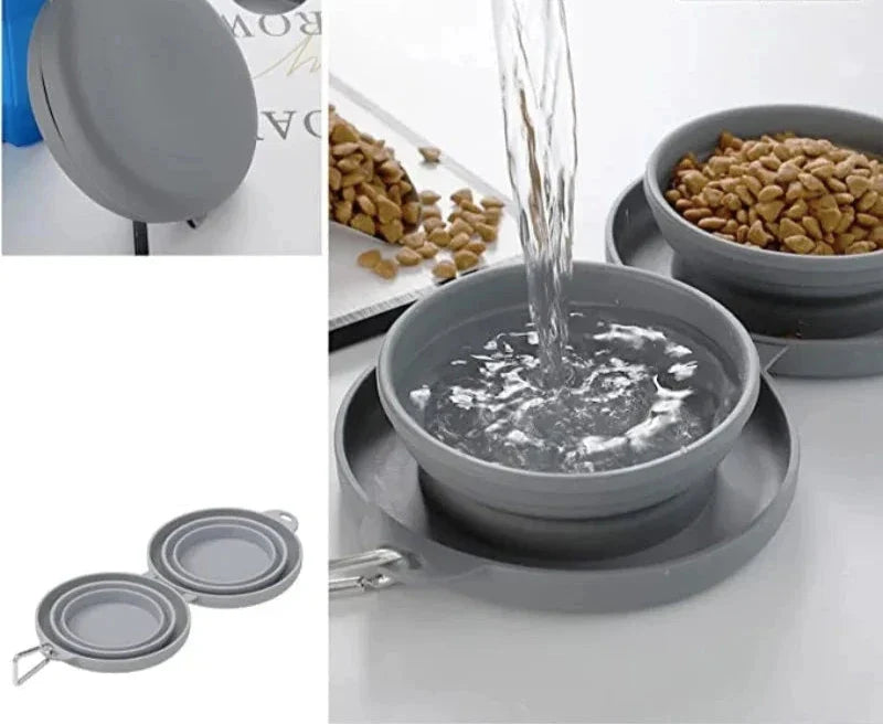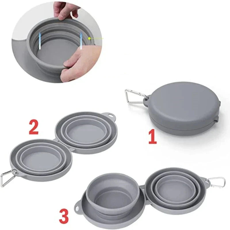 - A tigela de silicone pode ser dobrada para ajustar o volume de acordo com a quantidade de alimentos do seu animal de estimação, em até 600ml para água e até 210g para alimentos.