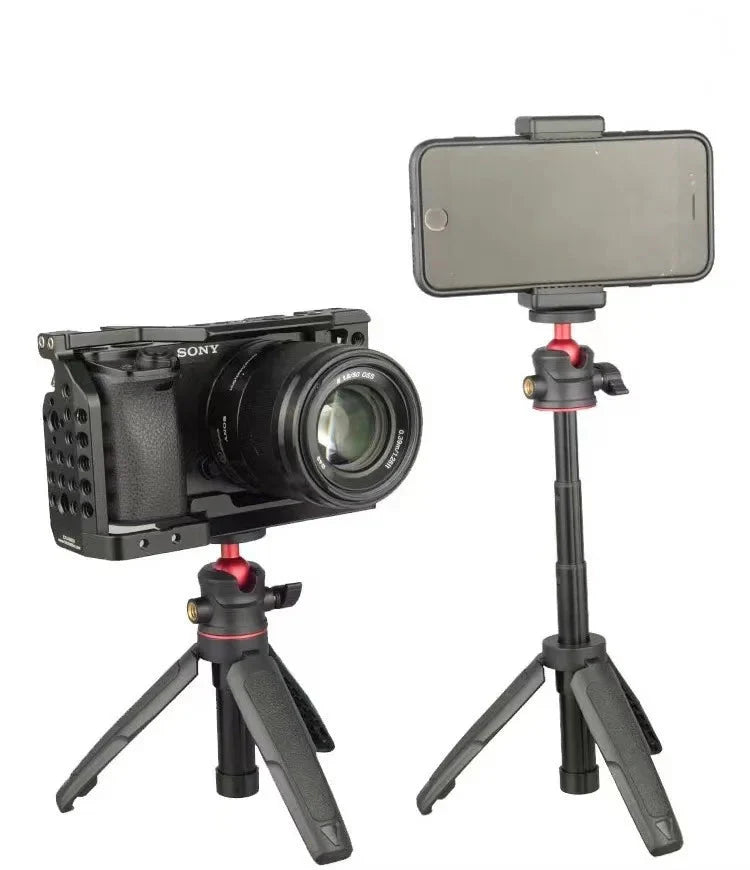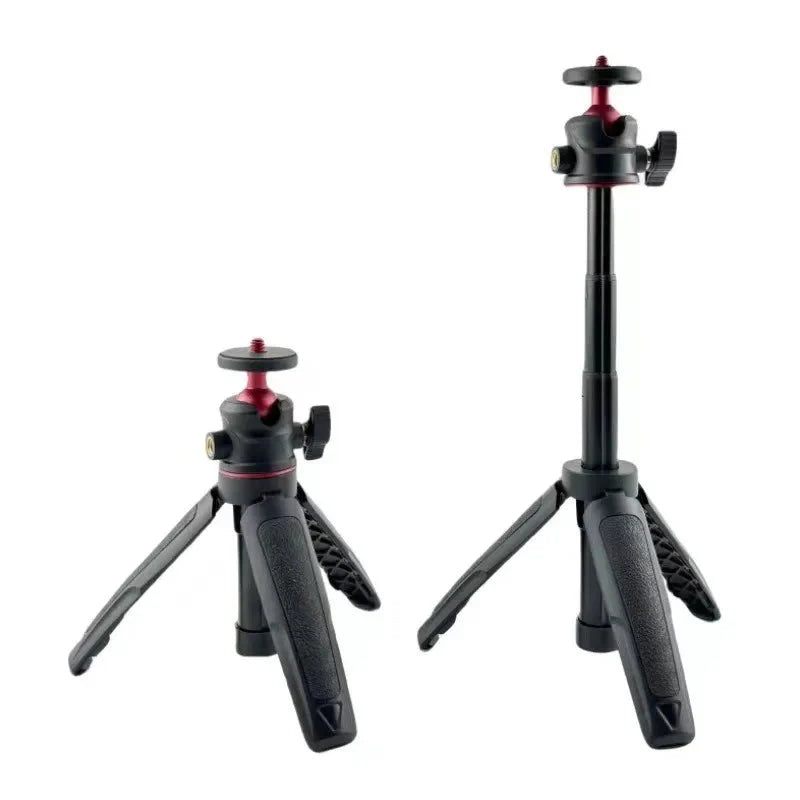 - Ajuste de Altura Flexível: Com uma altura ajustável de 15cm a 27cm, este tripé se adapta facilmente a diversas superfícies de mesa, garantindo a posição ideal para leitura do teleprompter.